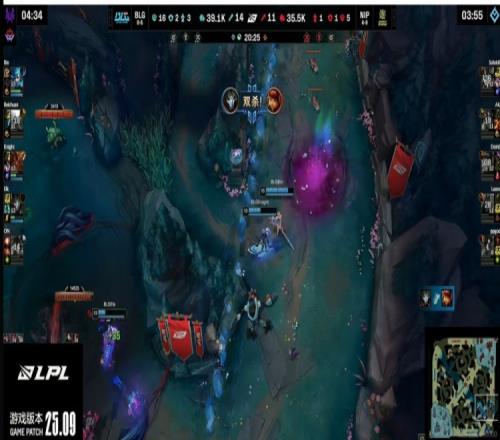 【25:02】NIP先手开团但是SoloKill兰博大招效果一般,BLG拿下小龙之后再拿荆棘厄塔汗!NIP先手秒了ON泰坦但是后排的Elk烬没人管了输出拉满!但是1打3的Leave维鲁斯一个Q闪向前瞬间也拿下三杀!这波最终knight岩雀击杀掉了Leave维鲁斯,BLG打出4换5团灭NIP!