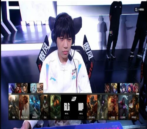 BLG:上单Bin、打野Beichuan、中单knight、下路Elk、辅助ON